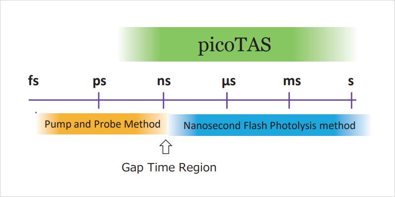 picoTAS는 새로 개발된 RIPT(Randomly Interleaved Pulse Train) 방식을 사용하여 기존 방식으로는 측정하기 어려운 Gap Time Region(1~20 nanoseconds)을 포함한 다양한 시간 범위에서 발생하는 변화를 측정하는 데 매우 유용합니다.