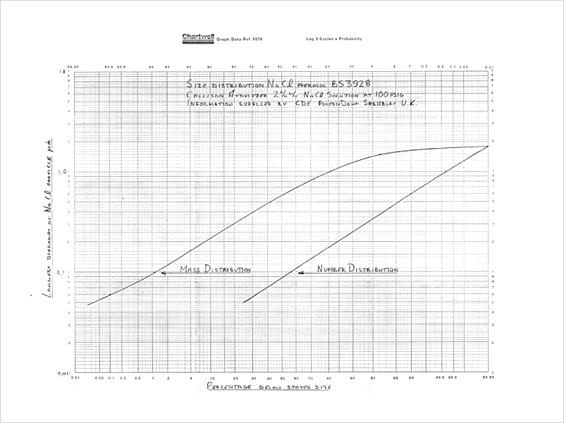 | Aerosol size | 2% NaCl solution giving a range of particle sizes 0,04μm to 1,2μm with a mass mean average of 0,65μm when measuring the longest diagonal or 0,4μm if measured aerodynamically |